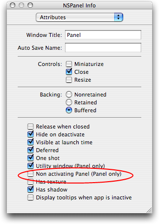 Floating Palette を作るには Window より Panel を使う方がいろいろ得する事があります。