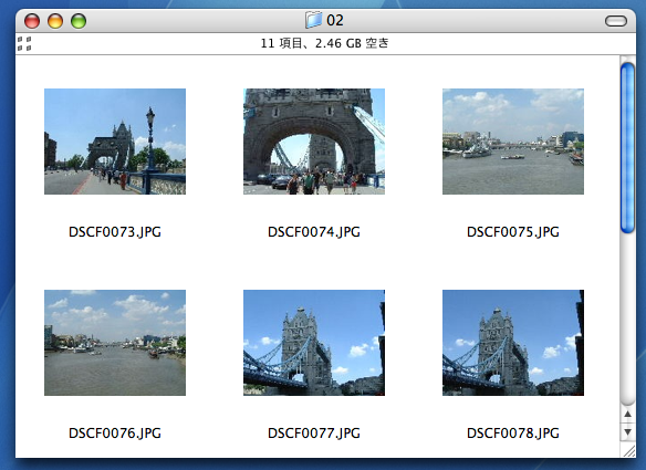 最前面の Finder ウィンドウを、アイコン表示にしてアイコンのサイズを 128×128 に変更します。画像ファイルをプレビューするのに便利です。