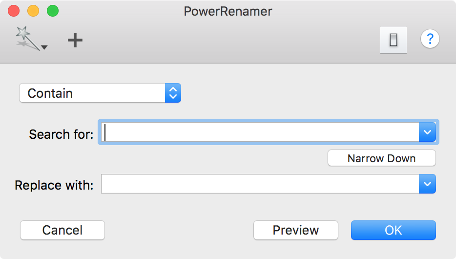 PowerRenamer changes names of selected files in Finder. Therefor it is recommended that launching from a certain launcher utility (e.g., Dock, Script Menu and so on) after selecting items in Finder.