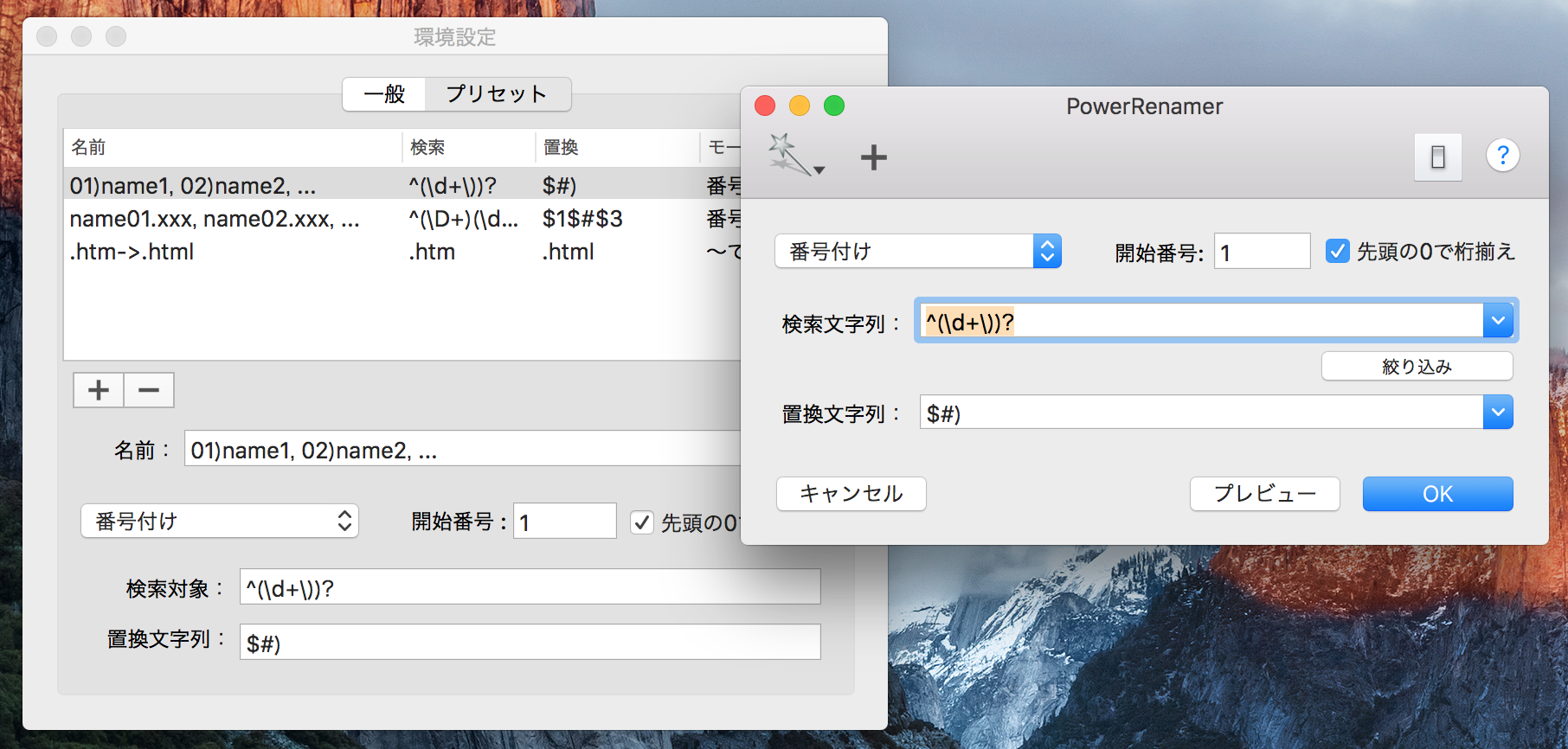 環境設定ウインドウで保存されているプリセットの管理が行えます。