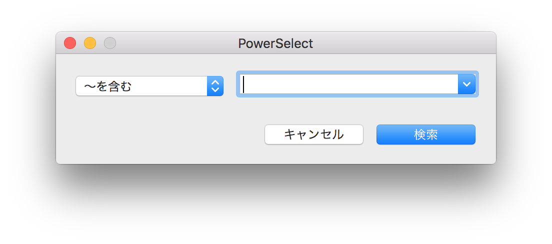 テキストフィールドとポップアップメニューでファイル名の検索パターンを設定し、「検索」ボタンを押すと、Finder で選択されている場所で条件に適合するファイル名の物がリストアップされます。