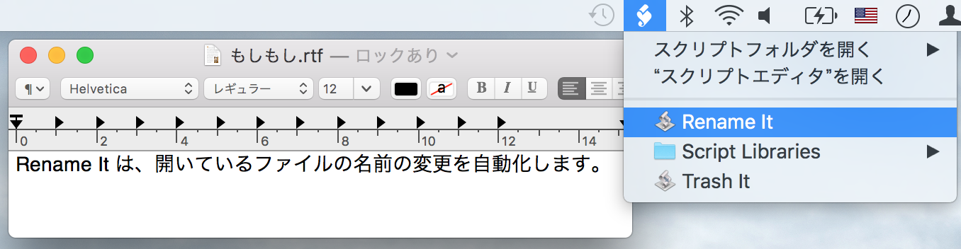 前面のアプリケーションで開いているファイルの名前を変更するアプリケーションです。Finder が最前面のアプリケーションの場合は Finder で選択されている項目の名前を変更します。