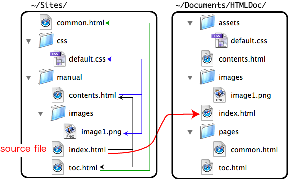 - 対象とするHTMLを基準として、それ以下の階層のファイルはフォルダ構造をできるだけ保持するようにした。