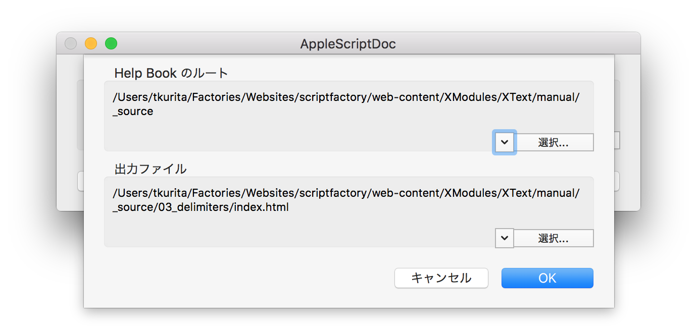 AppleScriptDoc は HTML リファレンスの出力方法として、次の三つの方法を用意しています。用途に応じて使い分けてください。