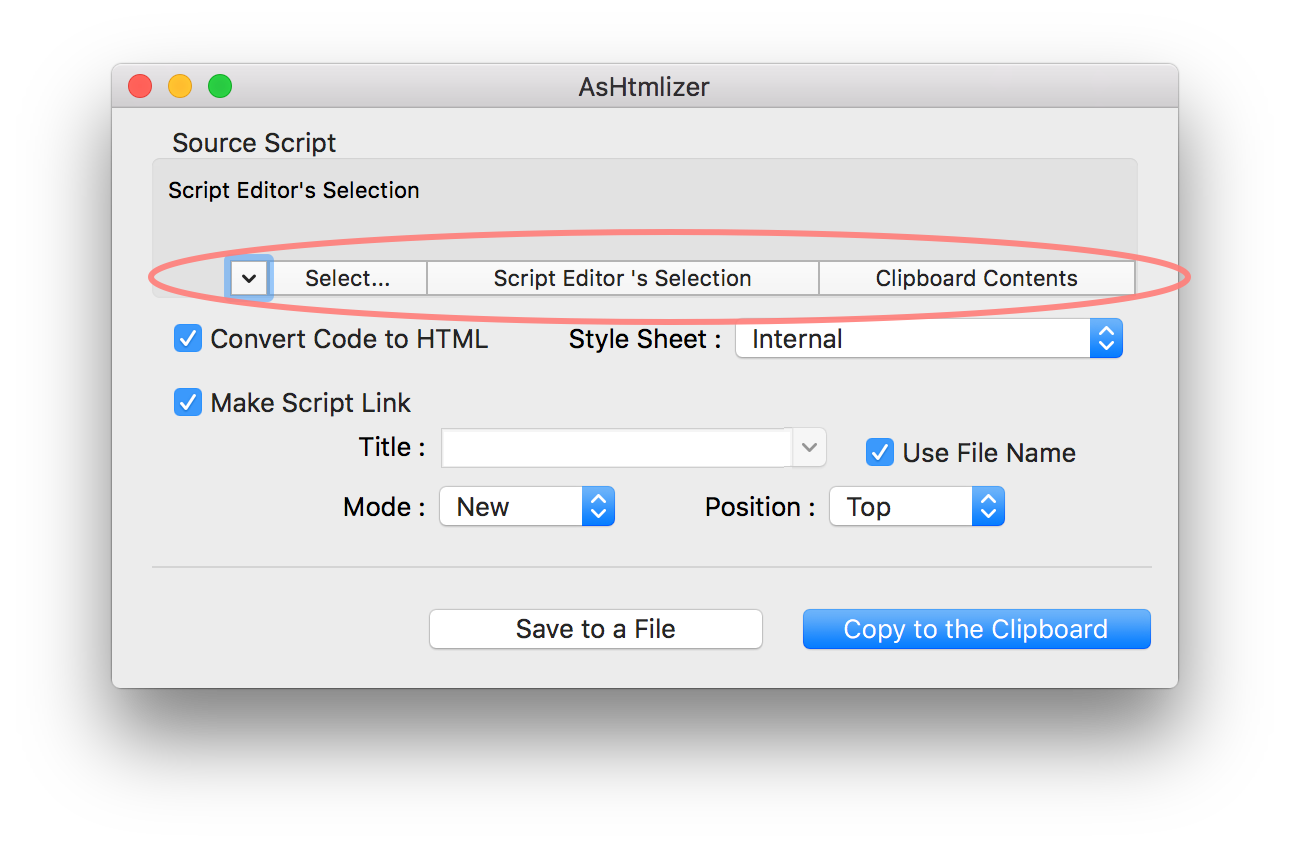 - The text in the clipboard will be compiled as AppleScript and converted into HTML.
